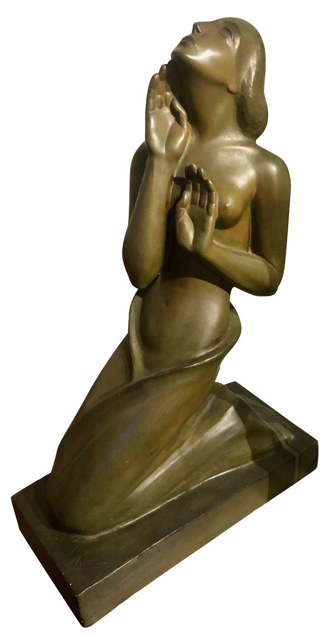 This is a vintage female figure... French, bronze, marble, le verrier, le faguays, martel, chiparus, bouraine, robj, godard, carvin, bitter. Pair of female bookends in silver plated finish, great pose in the art deco style, made in france. Art deco bronze of a cat in a caricature. This is a vintage female figure. 5 out of 5 stars. Art deco statues exhibit artistic curves and motion. Bronze sculpture of a eagle in art deco style. Vintage 1910s asian art nouveau. Bronze sculpture of a reclining female nude.